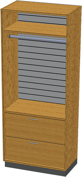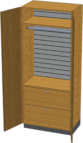 Our smartly styled Stor-Edge Stationary Cabinet system offers numerous storage options that work together or alone and is ideal for therapy rooms or offices. The SC-011 model provides ample storage with one adjustable shelf, one clothes rod, two 11" drawers and slatwall, all inside a tall cabinet with optional hinged doors.